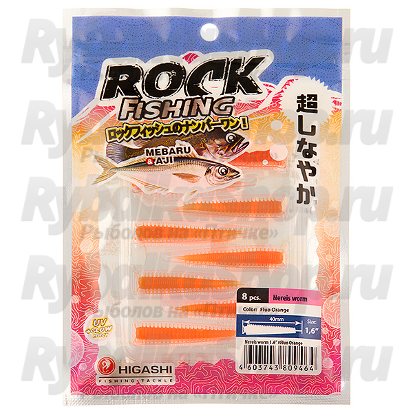Силиконовая приманка Higashi Nereis Worm 1.6" цвет #Fluo Orange