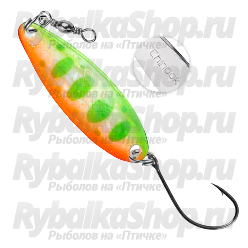 Daiwa Chinook Gekiatsu - линейка колеблющихся блесен весом 4, 7 и 10 гр., специально разработанная для ловли некрупных лососевых видов рыб: форели, семги и т.д. для внутреннего японского рынка. Оригинальные расцветки специально адаптированные под объекты ловли, в том числе и в морской воде. Блесна Chinook Gekiatsu при проводке производит неповторимые колебания, чем привлекает и провоцирует на атаку хищную рыбу.