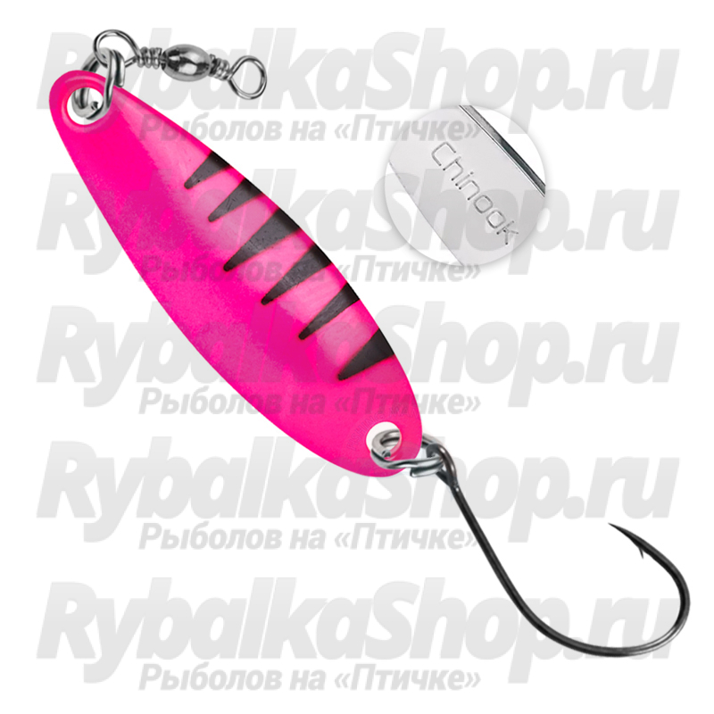 Daiwa Chinook Gekiatsu - линейка колеблющихся блесен весом 4, 7 и 10 гр., специально разработанная для ловли некрупных лососевых видов рыб: форели, семги и т.д. для внутреннего японского рынка. Оригинальные расцветки специально адаптированные под объекты ловли, в том числе и в морской воде. Блесна Chinook Gekiatsu при проводке производит неповторимые колебания, чем привлекает и провоцирует на атаку хищную рыбу.