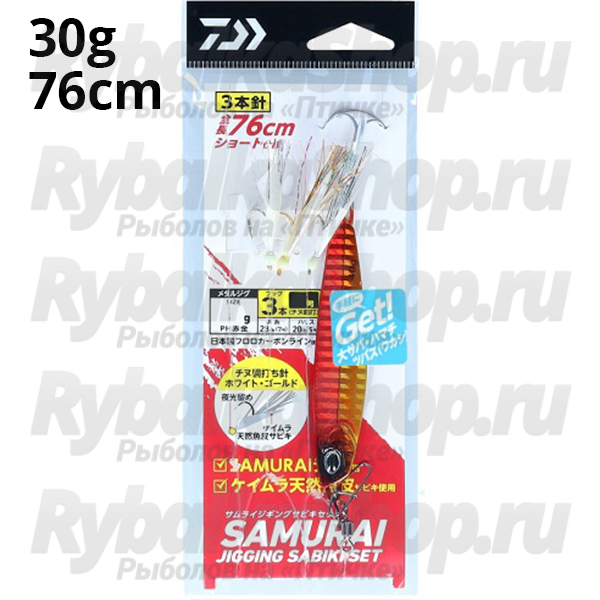 Оснастка Daiwa Samurai J Sabiki Set оснащена пилькером, тремя комплектами перьев и крючками BKK. Оснащенный японскими комплектующими и флюорокарбоном, этот качественный поводок будет искушать морских хищников во время вашей ловли с берега на джиг или вразвалку под бои.