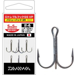 Daiwa D Treble Hook SS VP 3R - высококачественные тройные крючки, произведенные в Японии, являются одними из самых острых крючков на мировом рынке. Специальное покрытие SaqSas обеспечивает снижение сопротивления проникновению до 40%. Идеально подходит для оснастки воблеров и блесен.