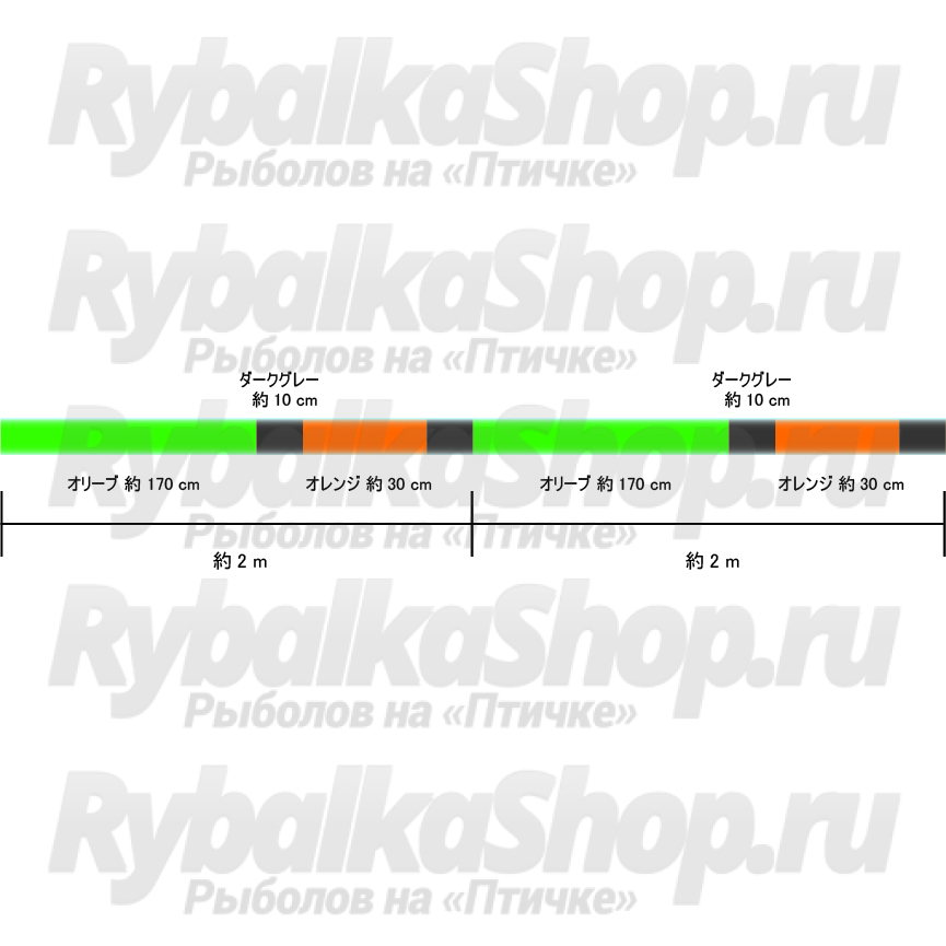 Оливковый цвет чередуется с 50 см оранжевого и 10 см темно-серого в пределах одного 2-метрового интервала, создавая окраску, похожую на камуфляж.