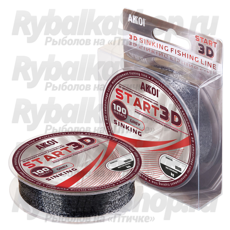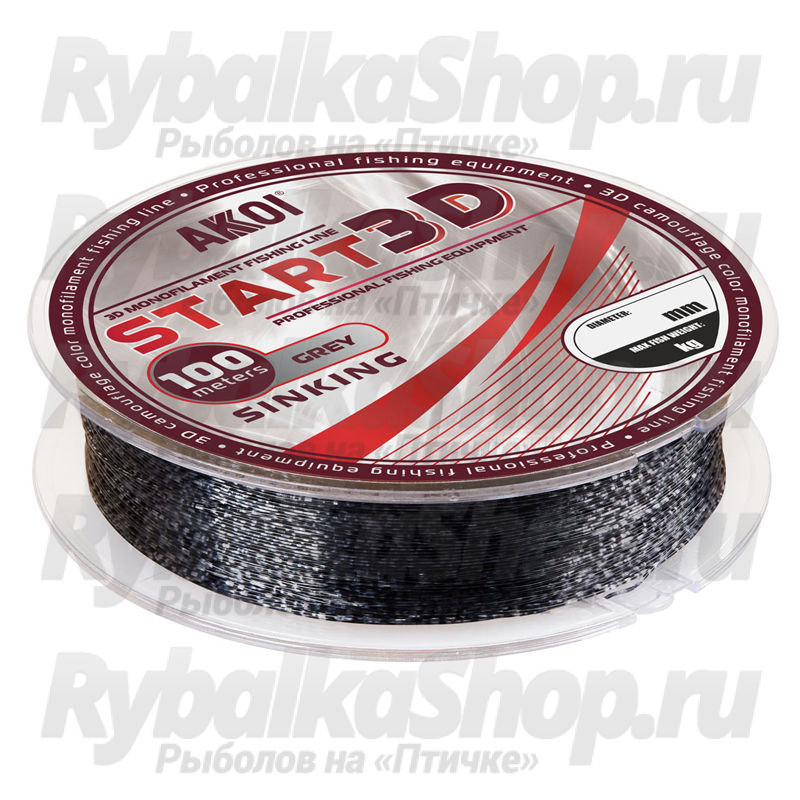 Леска Akkoi Start 3d 100m Grey Мнофильная леска START 3D от компании AKKOI — это новая разработка компании, объединившая в себе наиболее успешные решения, используемые при производстве. Результатом этого являются превосходные характеристики лески: высокая прочность и достаточная эластичность, а спецаильная технология 3D окрашивания придает леске отличные камуфлирующие свойства.