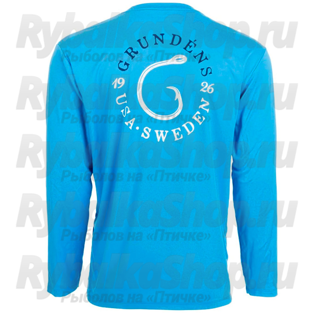 Описание Grundens Tech Tee LS Shirt, G Hook Print Coastal Blue