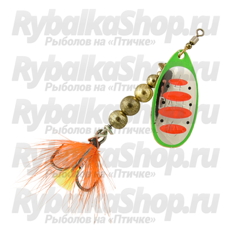 Приманка оснащена тройниками с мушкой. Это позволяет решить сразу несколько задач: выполняется маскировка тройника, осуществляется стабилизация задней части блесны при проводке и, самое главное, мушка служит дополнительной изюминкой для привлечения хищника.