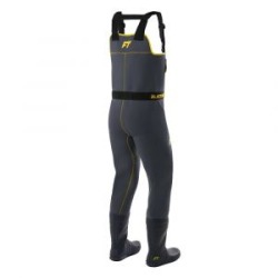 Отделка внутренней части сапог выполнена неопреном для отведения лишней влаги и улучшения теплоизоляционных свойств. Для более удобного надевания, вейдерсы оснащены влагозащищенной молнией «Tizip». Область колен и седалища усилена тканью с мягкой подкладкой из износостойкого армированного материала. Подтяжки имеют плоский механизм крепления в нужном положении и не мешают при вскидывании ружья.