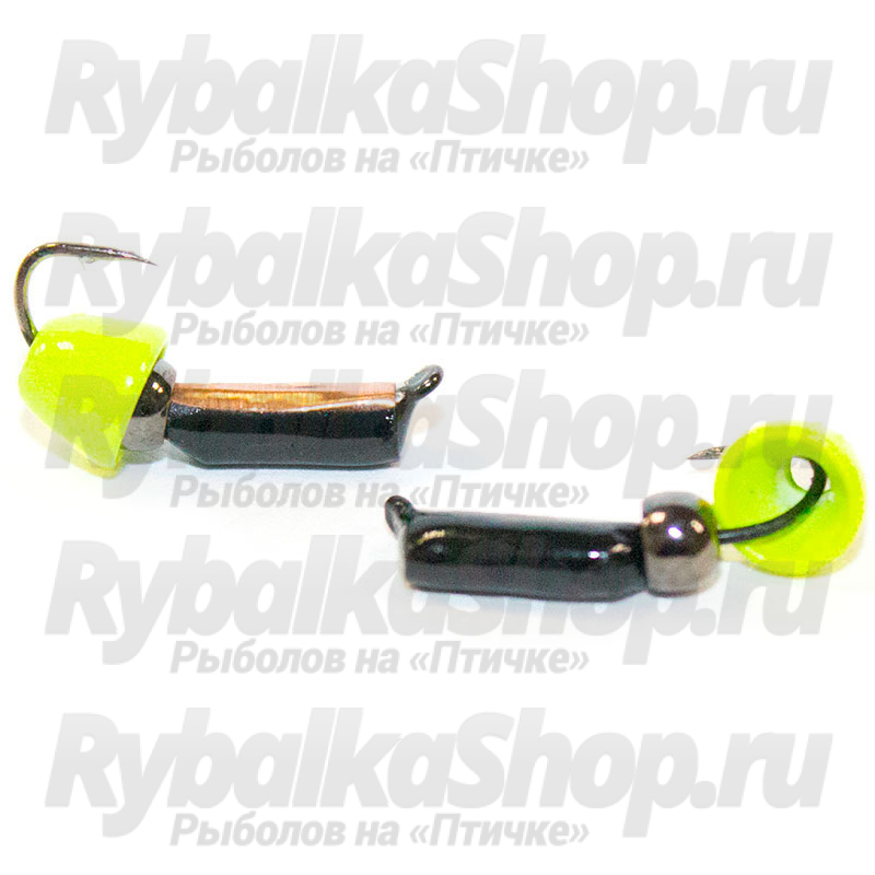Мормышка Гвоздик с коронкой №2 (чм)+ колокол лимон/ шар блэкникель(0,9)