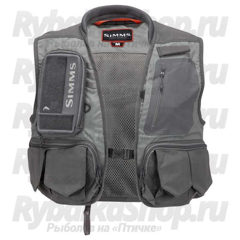 Жилет Simms Freestone Fishing Vest, Pewter, идеально сочетающий в себе технические характеристики и комфорт, имеет все необходимые места для хранения и удобного доступа к рыболовным аксессуарам.