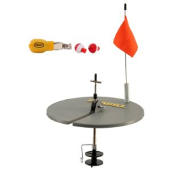 Жерлица зимняя Akara 36005-1 неоснащенная на подставке. Подставка и катушка изготовлены из морозостойкого ударопрочного пластика, штырь изготовлен из дюрали, основа флажка из пружинной стали, кончик флажка из светоотражающего материала для улучшения видимости в ночное время. Жерлица с диаметром основания 18 см. Диаметр катушки 8,5 см. Общая высота до флажка 76 см.