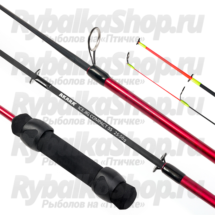 Akara Ice Jig Compact - зимняя удочка для блеснения, выполненная в штекерном исполнении, под катушку. Рукоятка из неопрена, поэтому ее комфортно держать рукой на морозе. Бывает в двух длинах 55 см и 70 см. А так же в четырех тестах, от самых легких 3-7 г, до тяжелых 25-50г. Поэтому имея набор таких удилищ, вы сможете ловить всю рыбу, попадающуюся в наших водоемах. Летом эта удочка может использоваться как бортовая, причем ей не нужен кивок, так как верхняя часть колена очень чувствительна, впрочем, это касается и зимней рыбалки.