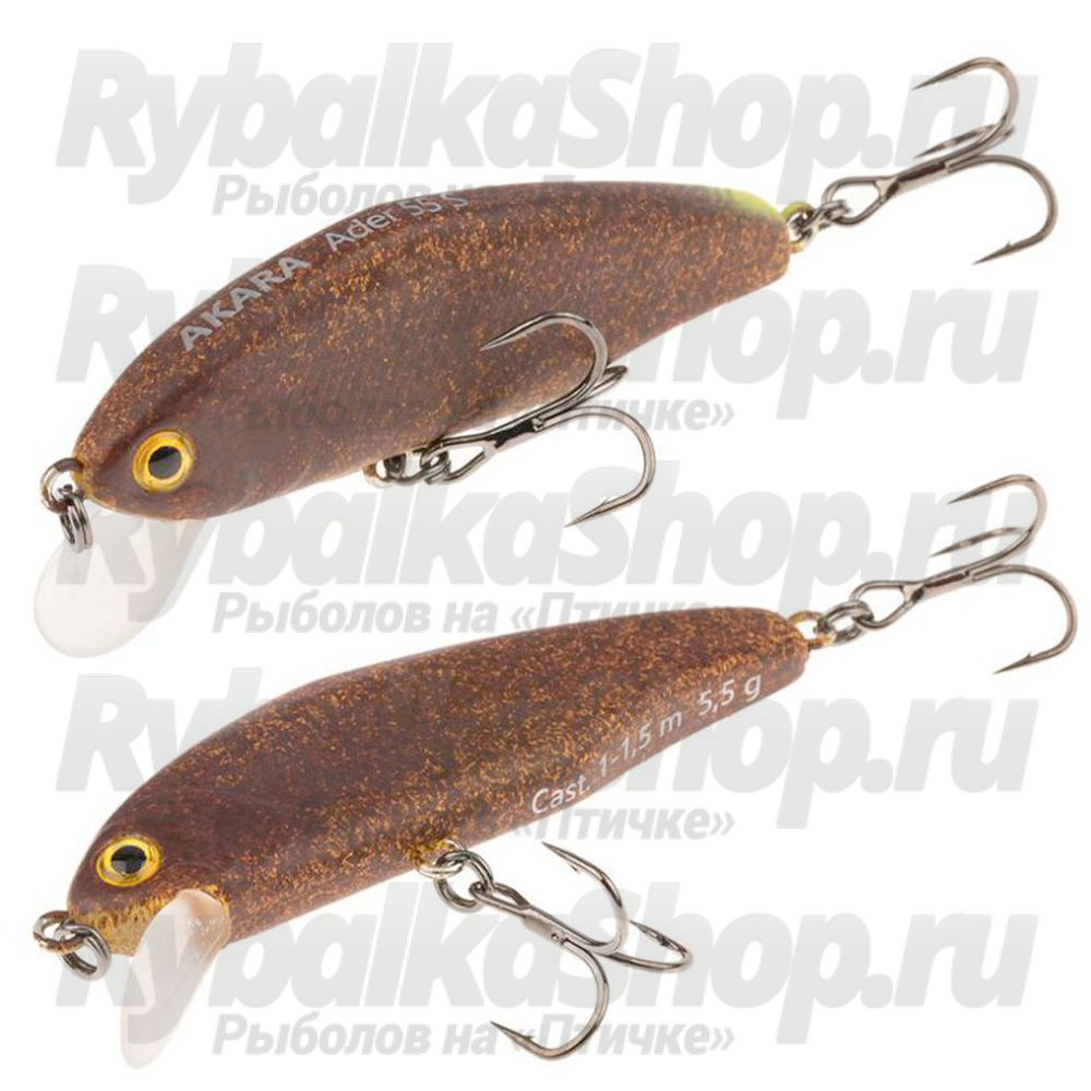 Воблер Akara Ader 55S - рыболовная приманка серии Ader, новинка 2023 года от компании Akara Fishing. Воблер класса Shad имеет довольно высокое тело, напоминающее плотву с небольшой лопастью. Обладает активной собственной игрой на равномерной проводке и отлично подходит для рывковой (твичинговой) проводки, при медленной проводке кастинговый воблер Akara Ader 55S движется переваливаясь показывая свои бока, провоцирую хищника на атаку. Лучше всего проявляет свои уловистые свойства на мелководных реках и озерах, неглубоких участках водохранилищ и крупных рек. Благодаря широкой гамме натуральных и провоцирующих расцветок эти приманки являются незаменимыми помощниками любого спиннингиста. Основные трофеи это щука и окунь, но и другие хищные не смогут устоять пред соблазнительной игрой приманки. Воблер Akara Ader 55S оснащен системой дальнего заброса. При обзоре характеристик и тестов, воблер Akara Ader 55S получил положительные отзывы и рейтинги экспертов по рыбной ловли. Крючки из высокоуглеродистой стали, тип плавучести – плавающий (Sinking). Заглубление до 1,5 м.