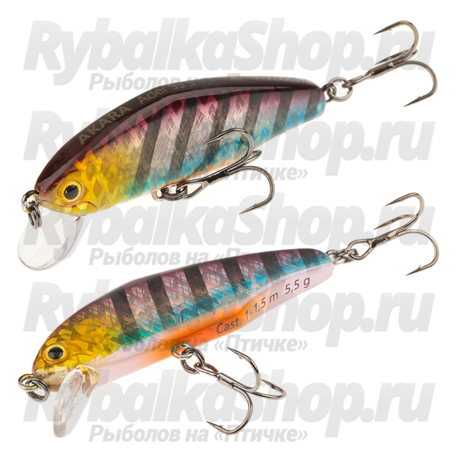 Воблер Akara Ader 55S - рыболовная приманка серии Ader, новинка 2023 года от компании Akara Fishing. Воблер класса Shad имеет довольно высокое тело, напоминающее плотву с небольшой лопастью. Обладает активной собственной игрой на равномерной проводке и отлично подходит для рывковой (твичинговой) проводки, при медленной проводке кастинговый воблер Akara Ader 55S движется переваливаясь показывая свои бока, провоцирую хищника на атаку. Лучше всего проявляет свои уловистые свойства на мелководных реках и озерах, неглубоких участках водохранилищ и крупных рек. Благодаря широкой гамме натуральных и провоцирующих расцветок эти приманки являются незаменимыми помощниками любого спиннингиста. Основные трофеи это щука и окунь, но и другие хищные не смогут устоять пред соблазнительной игрой приманки. Воблер Akara Ader 55S оснащен системой дальнего заброса. При обзоре характеристик и тестов, воблер Akara Ader 55S получил положительные отзывы и рейтинги экспертов по рыбной ловли. Крючки из высокоуглеродистой стали, тип плавучести – плавающий (Sinking). Заглубление до 1,5 м.