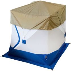 Зимняя палатка Higashi Comfort Solo традиционной кубовидной формы, имеет наиболее компактные размеры, идеальна для одиночной рыбалки со льда.