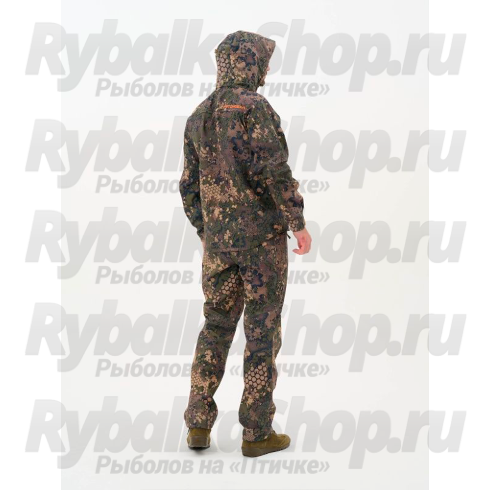 Костюм прекрасно вписывается для активного отдыха так и охоты и рыбалки. Способен выдержать довольно сильный дождь и мокрый снег, что подтверждают наши испытания. Проклеенные швы и влагозащитные молнии в цвет основного принта ткани защищают от попадания влаги. Внутренний теплый и мягкий флисовый слой создает дополнительный комфорт, а также позволяет коже дышать, отводит влагу от тела, быстро сохнет, обладает теплоизолирующими свойствами.