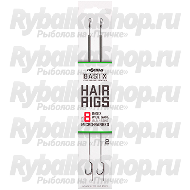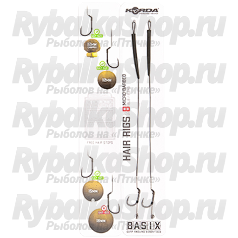 Korda Basix Hair Rigs Wide Gape готовы к использованию прямо из упаковки, все, что вам нужно сделать, это добавить приманку и соединить с основной леской (шнуром). Эти оснастки связаны с использованием поводочного материала камуфляжно-зеленого цвета с покрытием BASIX Coated. У оснастки мягкий волос с кусочком силикона, который удерживает поводковый материал на цевье крючка и помогает предотвратить спутывание. Волос был оптимизирован для размеров насадок, соответствующих размеру выбранного вами крючка.