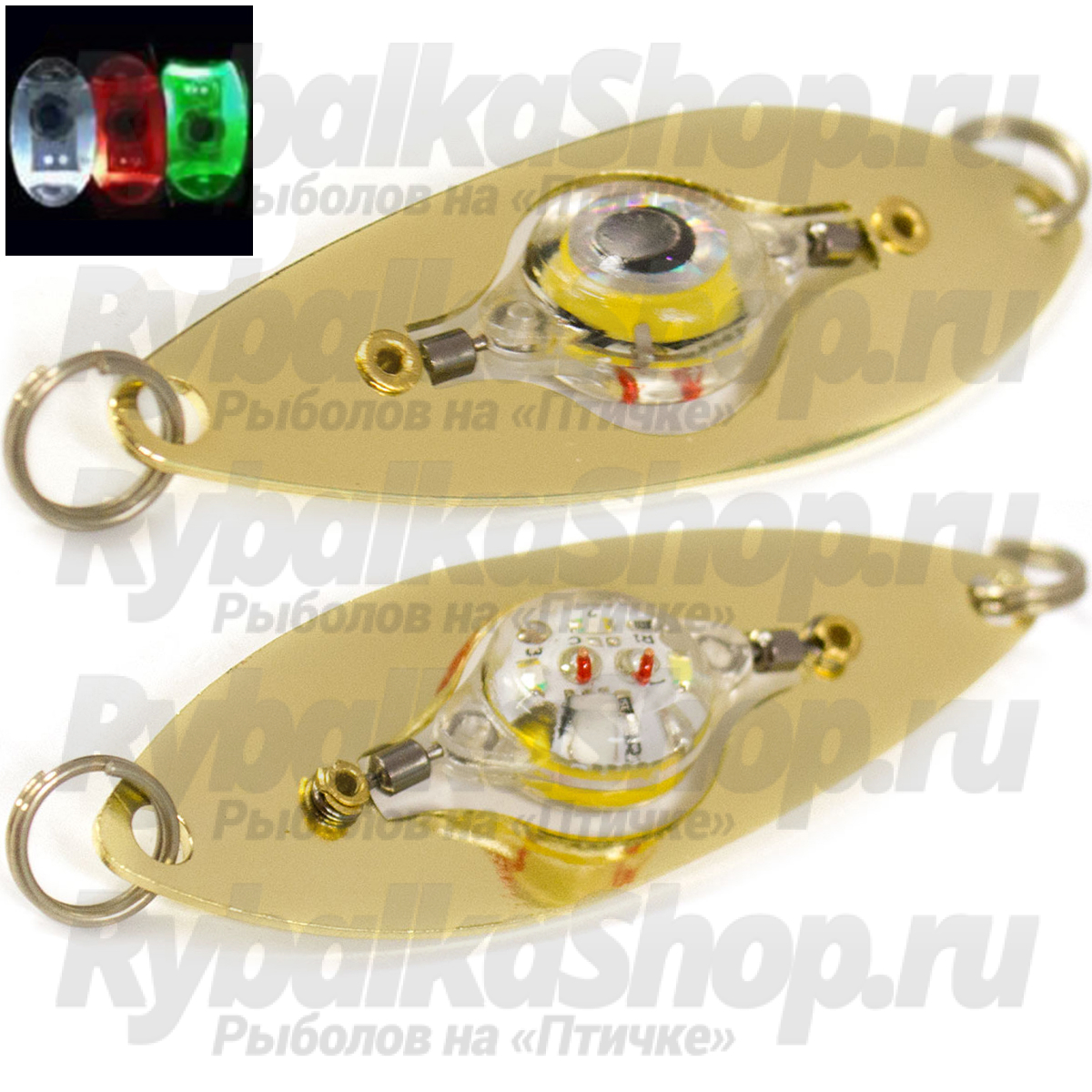 Цепь питания светодиода замыкается только при опускании блесны в воду, и диод начинает светиться, создавая привлекательное свечение под водой. Это особенно важно зимой, когда освещенность воды снижается из-за льда и снега.
