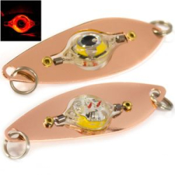 Цепь питания светодиода замыкается только при опускании блесны в воду, и диод начинает светиться, создавая привлекательное свечение под водой. Это особенно важно зимой, когда освещенность воды снижается из-за льда и снега.