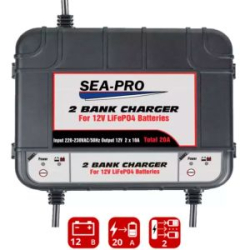 Зарядное устройство Sea-Pro ТЕ4-0274 (4х12В LiFePo4) - модель морского исполнения с защитой от проникновения влаги IP67 имеет 4 выходных порта для зарядки напряжением 12В и током 10A на каждый LiFePo4 аккумулятор, обеспечивая таким образом корректную и полную зарядку в автоматическом режиме сразу четырех LiFePOL4 аккумулятора.