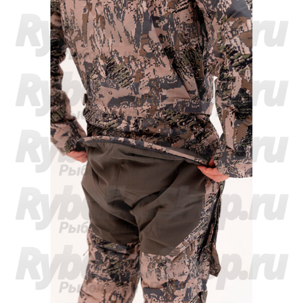 Анатомический крой комбинезона, усиленные вставки на коленях, по низу брюк и в седалищной части, надежные молнии и ремни, – обеспечат плотную посадку и уверенность при эксплуатации костюма, при этом позволят вам свободно двигаться, приседать и даже падать на снег во время зимней охоты или активного отдыха.