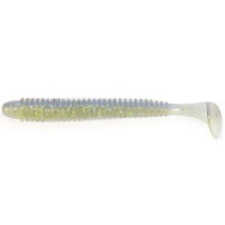 Тело приманки Grows Culture Shiner 4.0 сильно сплющено с боков, а тонкий хвост заканчивается достаточно массивной лопастью. Это придает этому виброхвосту резко очерченную средне амплитудную высокочастотную игру. Такая приманка будет актуальна всегда и везде - на тяжелом джиге, в неогруженном оснащении, на "Каролине" и судачьем "отводном поводке".