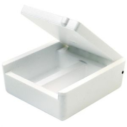 Изделия из данного материала достаточно прочные, не скалываются, в отличие от пенопласта, восстанавливаются после деформации. Мотыльницы очень легкие, герметично закрываются крышкой,а защёт мягкой резинки надёжно закрепить её как на ноге,так и на рукаве рыбака. Изделия прекрасно сохраняют тепло и обеспечивают сохранность мотыля даже при морозе ниже -25 градусов.