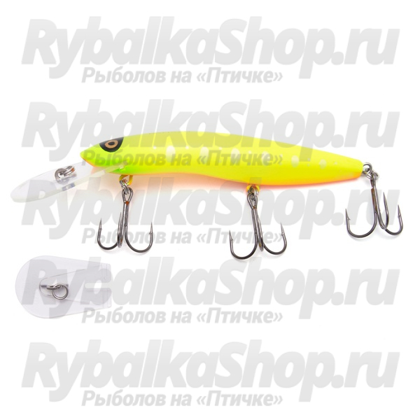 Благодаря своим размерам, воблер живо интересует щуку, сома и крупных судаков. Приятной особенностью приманки является сменная лопасть, прилагаемая в комплекте, благодаря которой вы можете менять заглубление воблера.