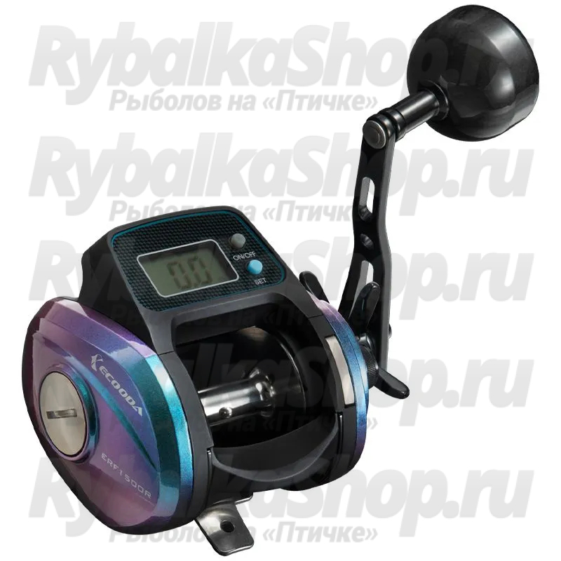 Катушки мультипликаторные Ecooda Red Falcon - новая серия качественных троллинговых и бортовых мультипликаторов небольшого (500) и среднего (1500) размера в леворучном (L) и праворучном (R) исполнениях. Все модели пригодны для соленой воды. Главная особенность - электронный счетчик отпуска лески (с метрах), позволяющий точно контролировать глубину или отпуск приманки.