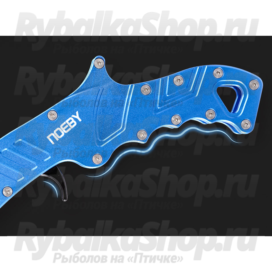 Челюстные захваты при рыбной ловле всё чаще заменяют подсаки, так как значительно облегчают снятие и удержание улова. Созданный для этих целей захват челюстной Noeby Lip Grip оснащен курком с пружинным механизмом, позволяющим надежно удерживать даже тяжелую рыбу. Принцип действия захвата очень прост: достаточно зажать курок, чтобы открыть клещи, после чего рыба берется за нижнюю челюсть и курок отпускается, крепко фиксируя улов.
