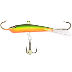 Columbia BigFish – крупный балансир, предназначенный для зимней рыбалки на большой глубине с течением. Прогонистое тело, приплюснутое с боков, с фигурным рифлением поверхности, которое имитирует чешую, отличается реалистичностью и напоминает узкотелого малька. Детализированные глаза дополнительно провоцируют хищника на атаку. Прозрачный хвостовой плавник играет роль стабилизатора. Он выполнен из прочного морозостойкого пластика. Балансир имеет два впаянных одинарных крючка и съемный подвесной тройник. Анимация данной приманки проста и эффективна: балансир уверенно движется под водой по траектории восьмерки. Columbia BigFish отлично ловит крупного окуня, щуку и судака.