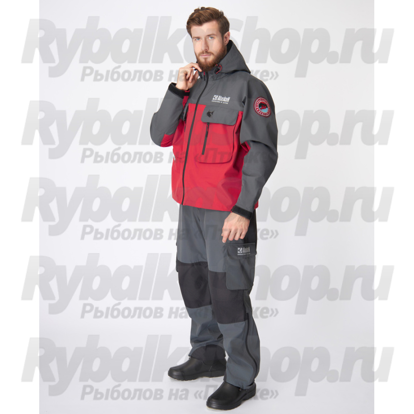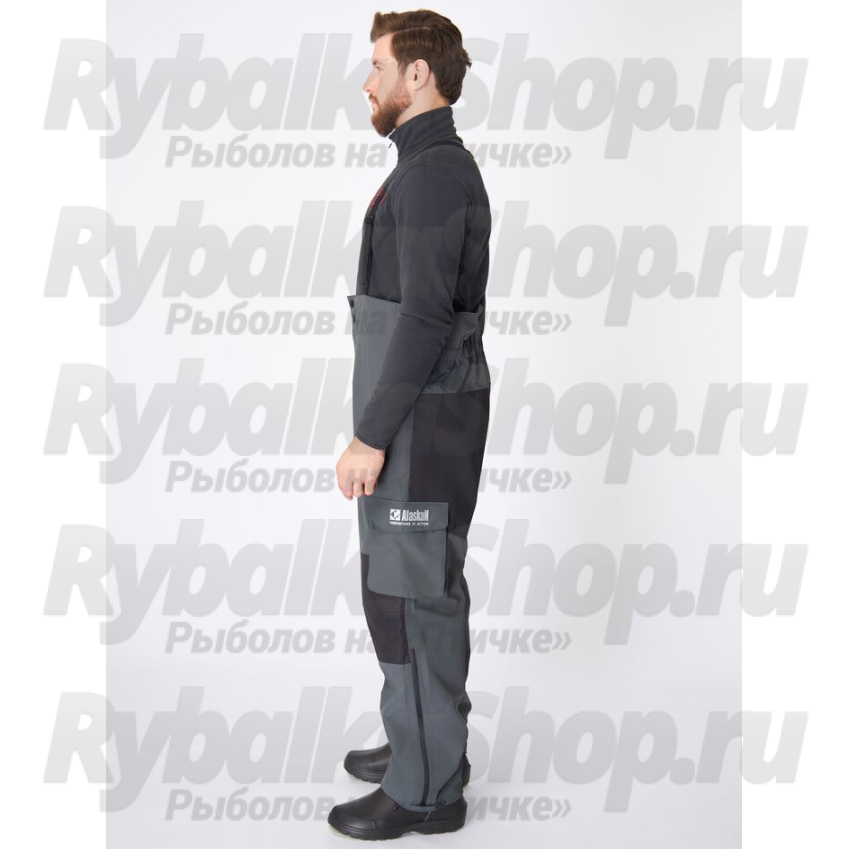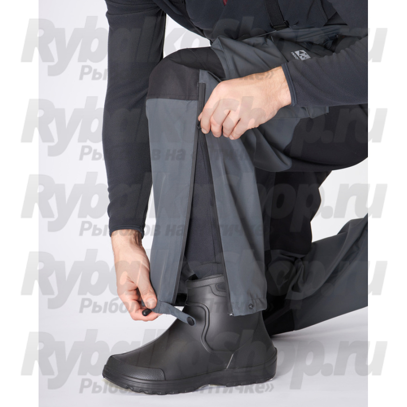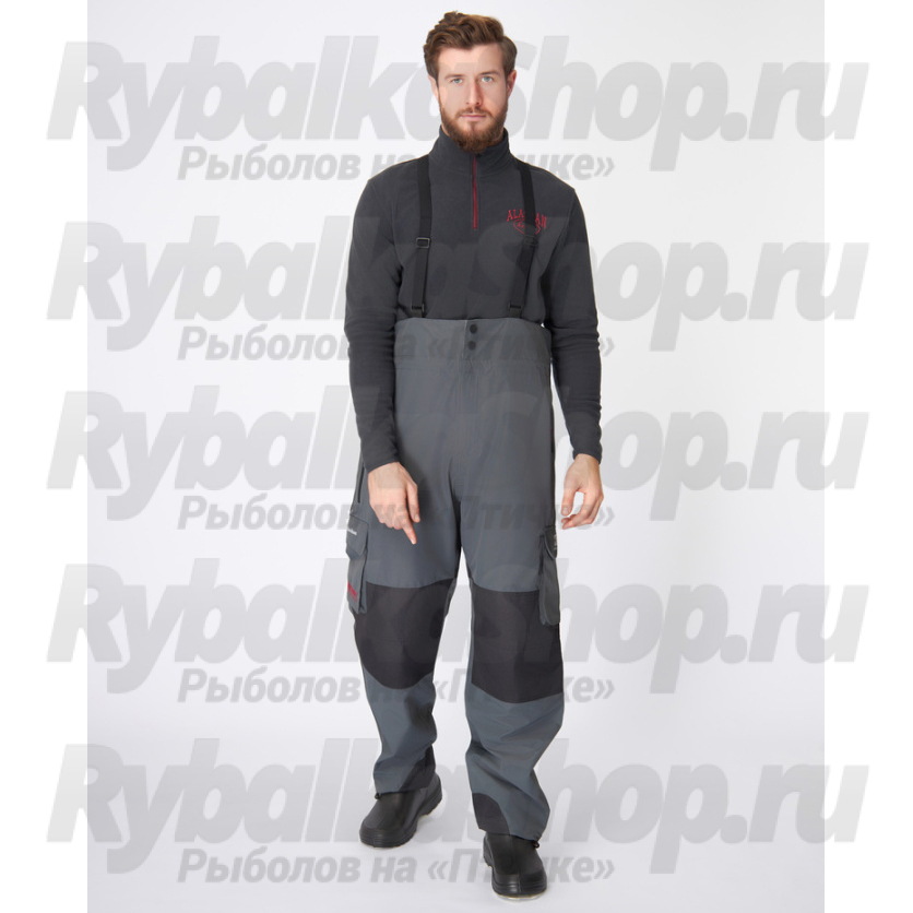 На передней части штанов располагаются два кармана с брызгозащитными молниями для рук и два боковых объемных кармана. Детали колен и задней части усилены прочной тканью. Низ брючин имеет брызгозащитные молнии для удобства надевания и защиты от брызг в лодке.