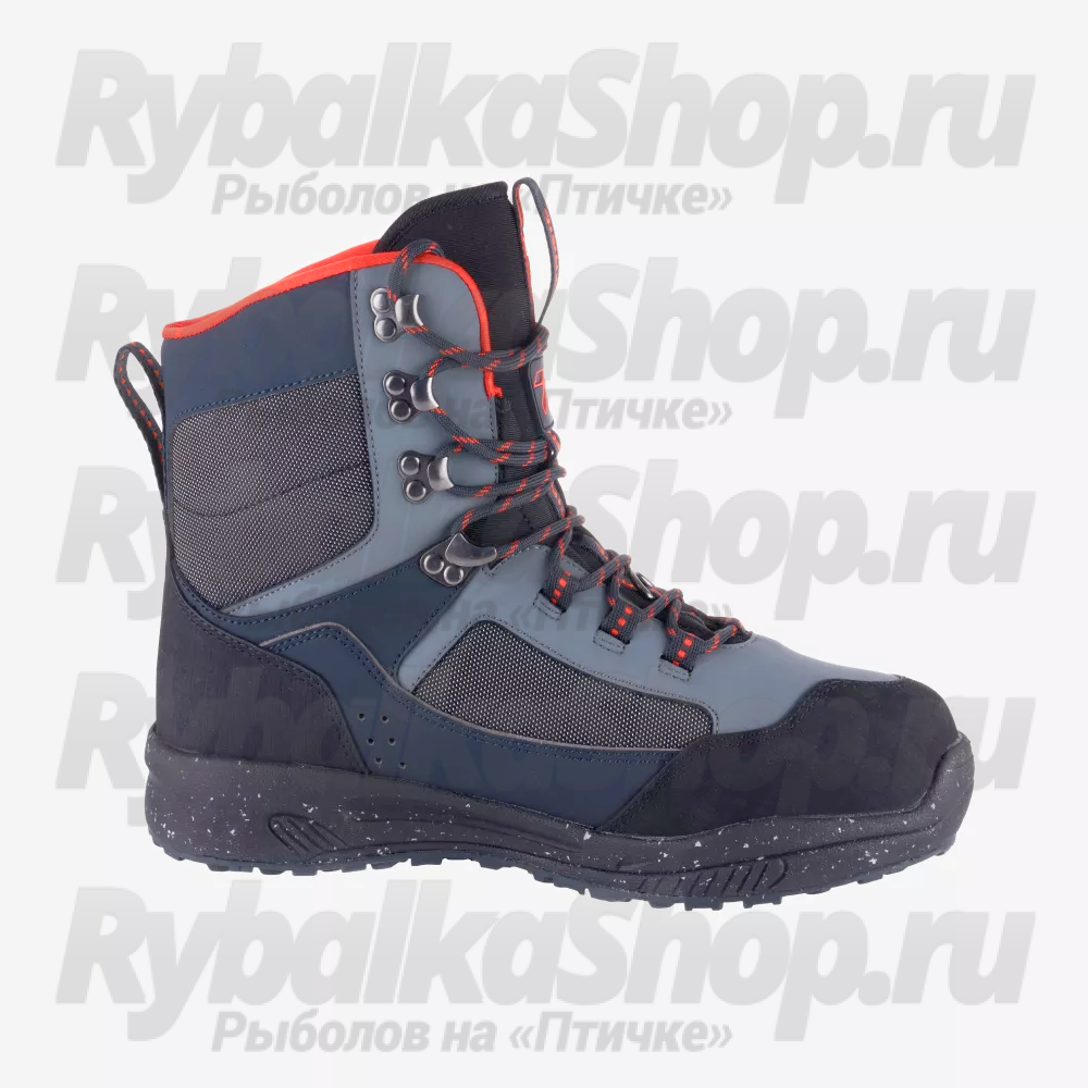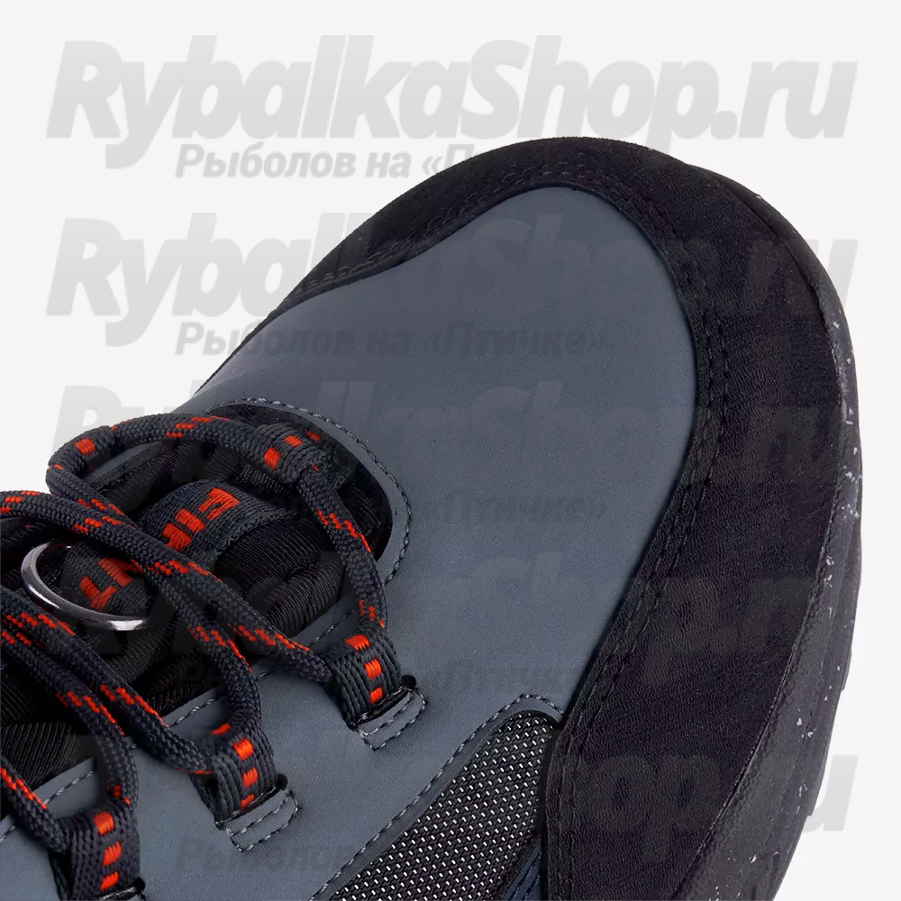 Модель выполнена из лёгкого, износостойкого материала с усилением в области носка и пятки, что обеспечивает дополнительную защиту от повреждений. Высокая конструкция ботинок хорошо фиксирует голеностоп, создавая устойчивость и комфорт при движении. Прочная резиновая подошва с надёжным протектором образует отличное сцепление с поверхностью. Благодаря увеличенной петле процесс надевания становится быстрым и удобным. Прочные нейлоновые шнурки надежно закрепляют и регулируют посадку ботинок. Обновлённая и более плотная стелька обеспечивает дополнительный комфорт при ношении. Также у модели появилось кольцо для крепления крючка вейдерсов, что делает ботинки еще более удобными и функциональными для использования на рыбалке или других активностях в воде. Специальные дренажные отверстия для слива воды помогают сохранить ноги в сухости и комфорте. Обратите внимание, что ботинки с дренажными отверстиями необходимо использовать только в комплекте с вейдерсами с неопреновым носком. Модель выполнена в графитовом цвете и на каждую пару нанесён контрастный логотип.