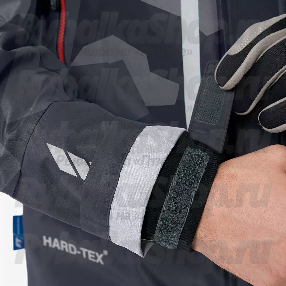 Четырехслойная ткань с мембраной HARD-TEX на 100% защищает от воды и ветра. Пропитка DWR предотвращает впитывание вязкой грязи и влаги, препятствуя появлению на поверхности следов и разводов. Структура ткани позволяет сохранять комфорт в течение 24 часов под проливным дождём и мокрым снегом. Артикулированный крой учитывает анатомию человеческого тела и обеспечивает полную свободу движений. Функциональный дизайн модели объединяет в себе продуманные детали и оригинальную расцветку. Модель имеет четыре кармана: три боковых и один внутренний. Центральная двухзамковая тракторная молния YKK обеспечивает прочное соединение и защиту от проникновения воды и ветра. На центральной планке установлена застежка на липучке. Мягкий микрофлис на вороте предотвращает натирание подбородка. Нарукавные манжеты на липучке препятствуют попаданию воды и грязи внутрь куртки. Регулируемый капюшон позволяет настроить оптимальный объем. Светоотражающие элементы 3M обеспечивают безопасность в ночное время суток.
