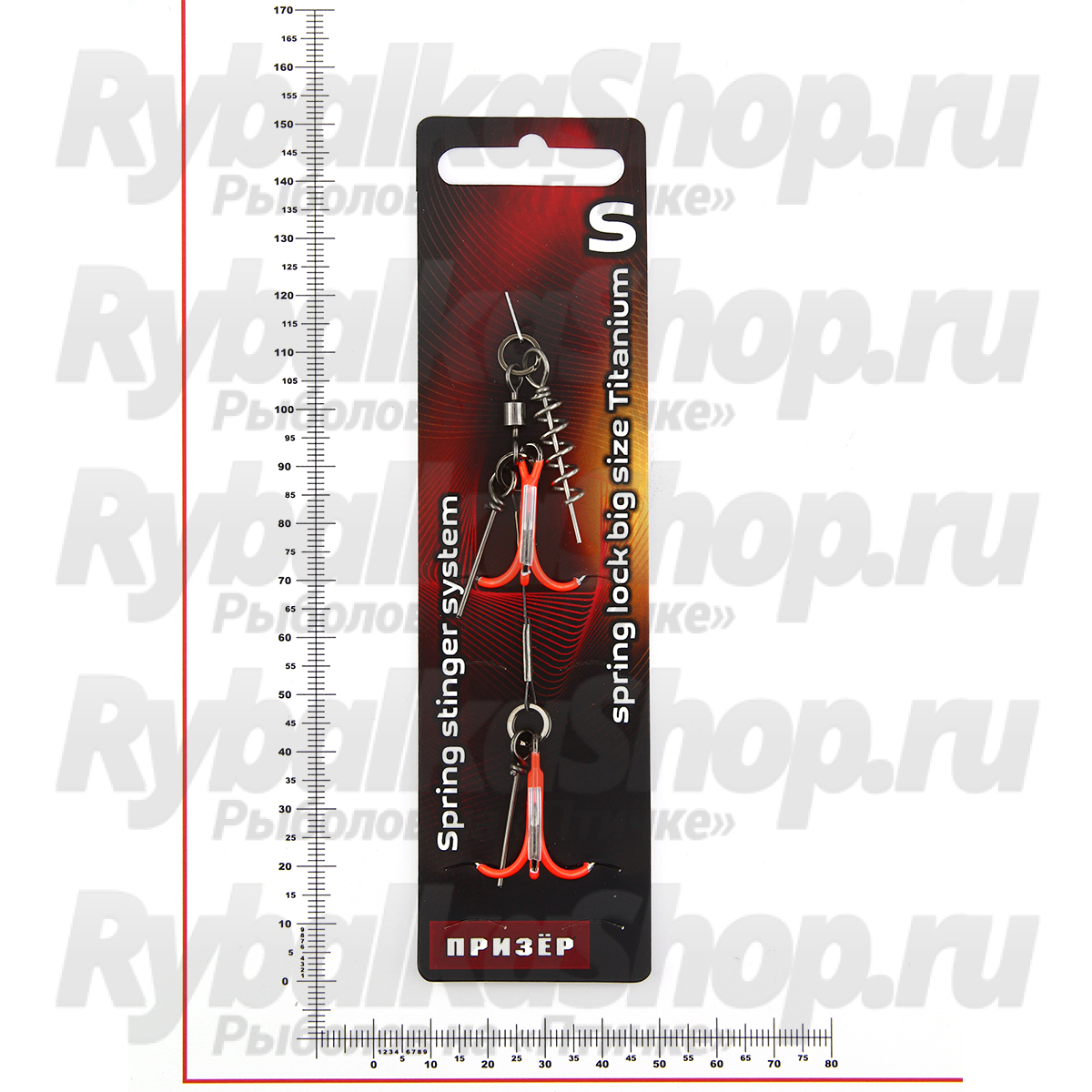 Оснастка Призёр Spring Lock Big Size состоит из 2 качественных крючков-тройников, соединенных титановым каркасом, спирали, вертлюга, заводных колец и шипов, служащих для фиксации стингера и его составляющих элементов в теле крупной мягкой приманки.