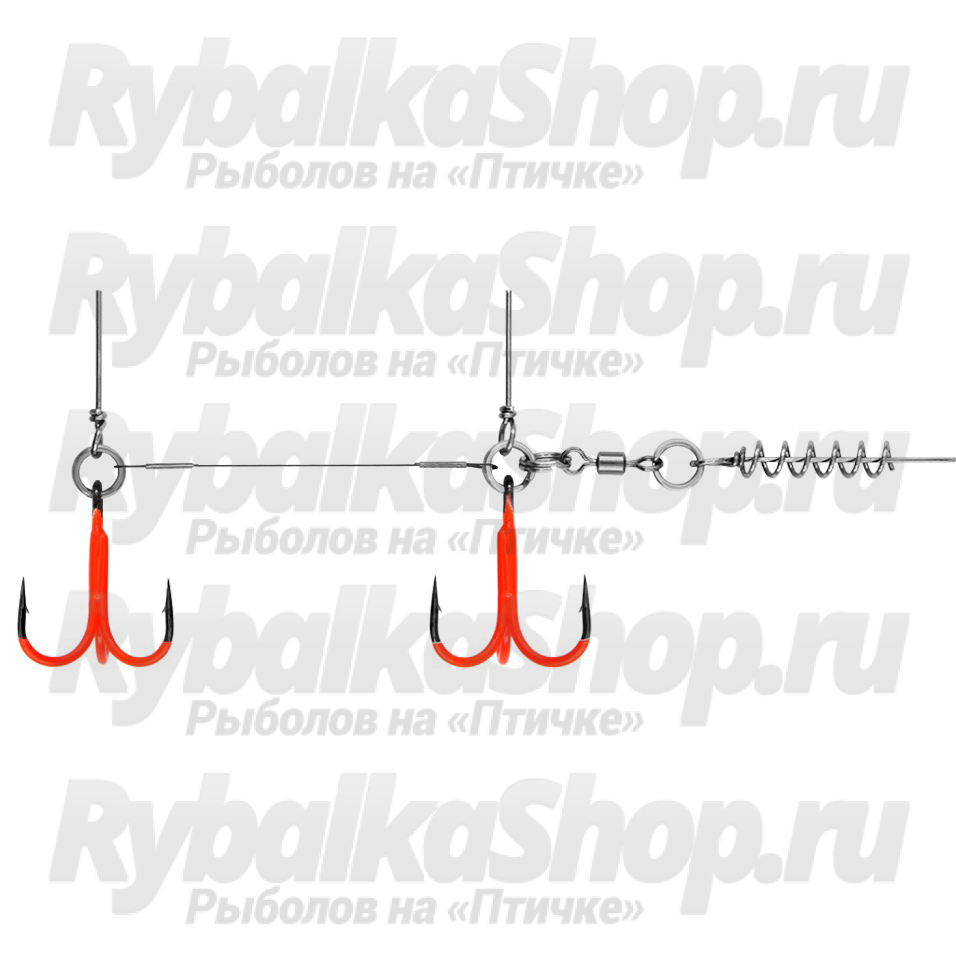 Оснастка Призёр Spring Lock Big Size состоит из 2 качественных крючков-тройников, соединенных титановым каркасом, спирали, вертлюга, заводных колец и шипов, служащих для фиксации стингера и его составляющих элементов в теле крупной мягкой приманки.