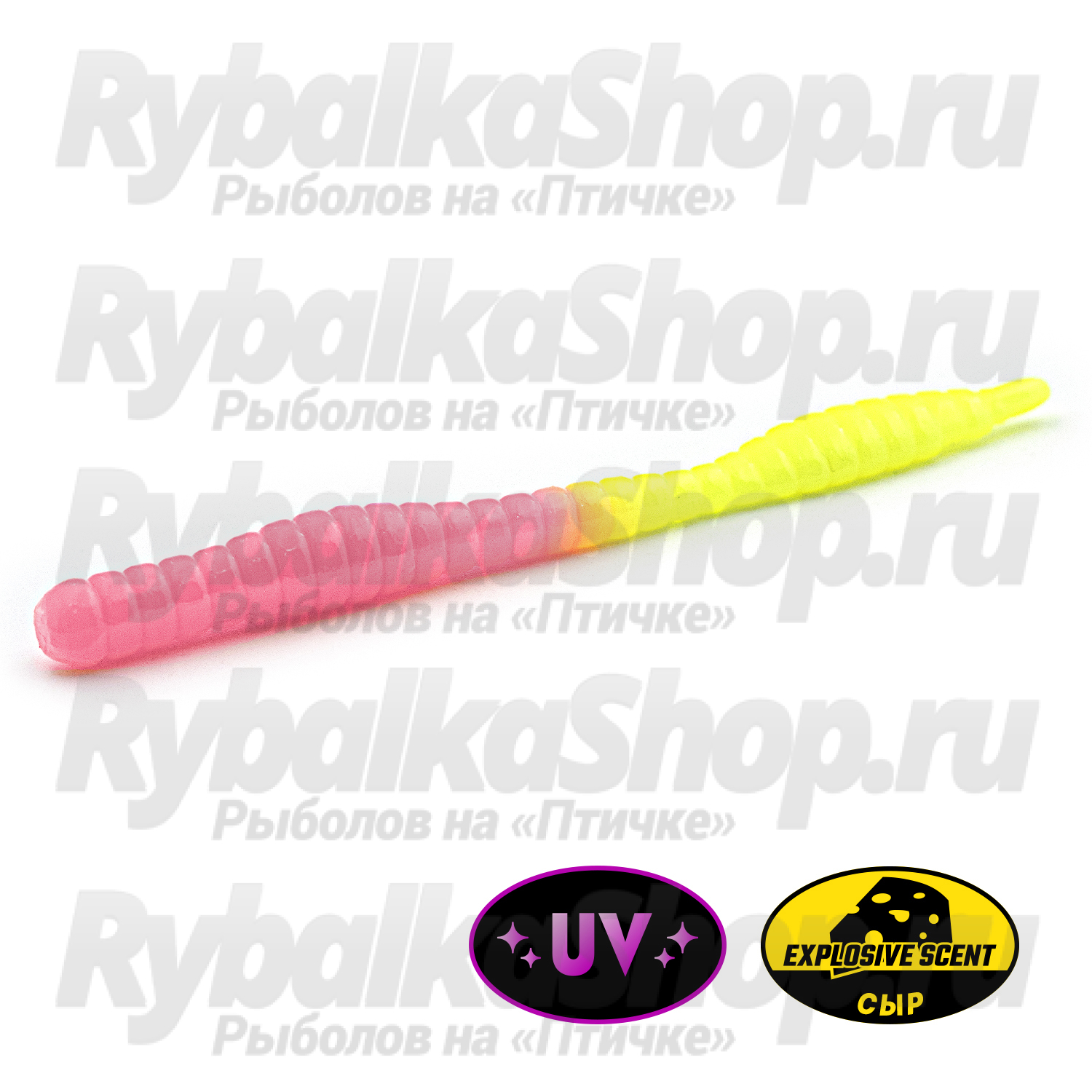 Силиконовая приманка Rampage Trout Hunting Dying Worm 3.1" цв. #107 - Bubble Gum / Chartreuse UV