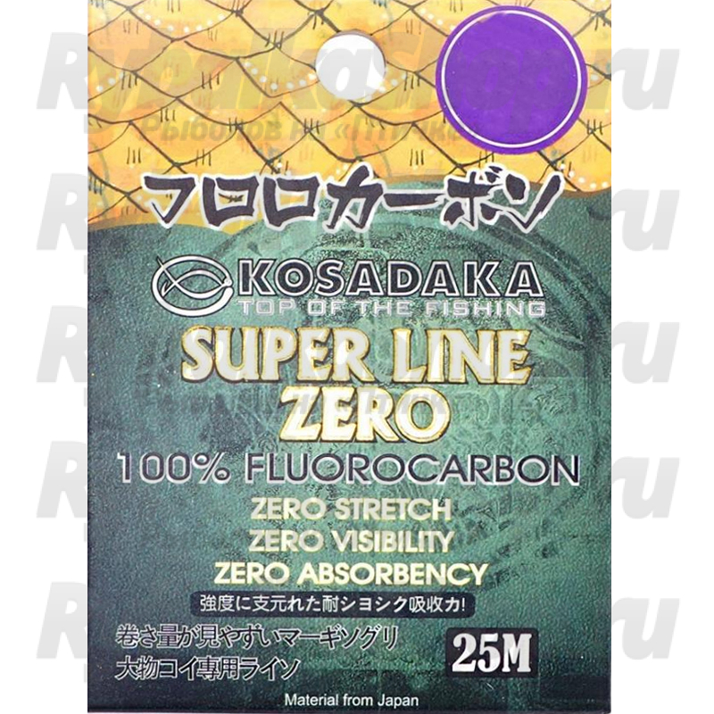 Девиз представленной серии написан на упаковке "Zero: stretch, visibility, absorbency" (нулевая растяжимость, видимость, впитываемость). Это и есть основные отличия Косадака Super Line Zero. Линейка изготовлена из стопроцентного качественного флюорокарбона японского производства. Наделена максимально приближенной к нулевой растяжимостью, а следовательно, хорошей сенсорикой.