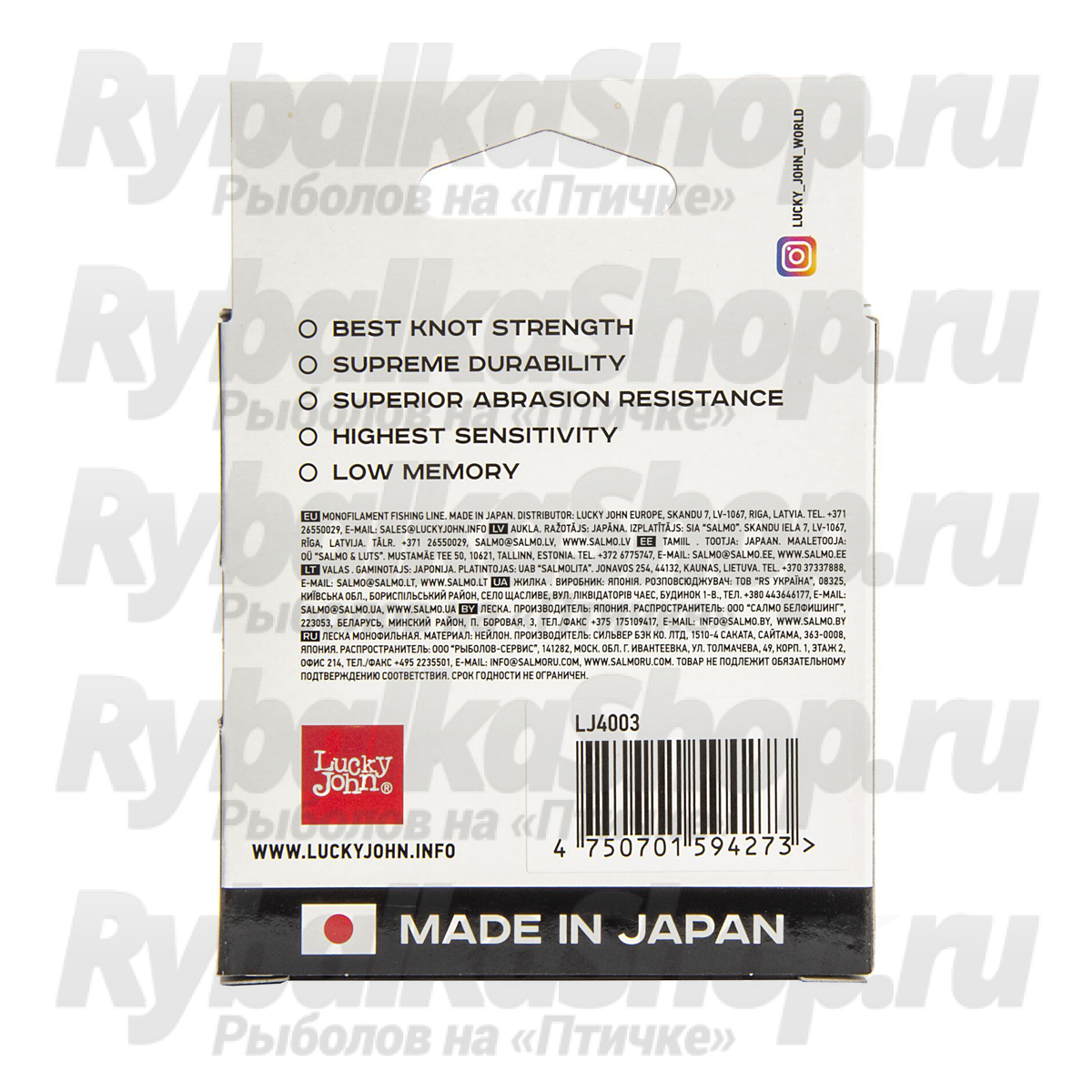 Монофильная леска Lucky John Basara для подлёдной ловли, разработанная и изготовленная в Японии с использованием самого высококачественного сырья и новейших технологий. Благодаря инновационной молекулярной структуре она не теряет своих свойств даже при 50-ти градусном морозе.