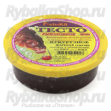 Готовое тесто «Fish-ka» используется на рыбалке в качестве насадки. Тесто растворяется в воде, отдавая слой за слоем насыщенные компоненты для привлечения рыб. Можно использовать тесто как связующий материал с добавлением в фидерные кормушки.
