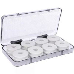Фиксатор из EVA имеет насечки, позволяющие зажимать крючки, а не втыкать их. При этом, тело приманки остаётся хорошо видно через прозрачную плексигласовую крышку.
