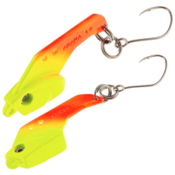 DUO Drag Metal Force Semi-Long по сравнению с короткой моделью Drag Metal Force, данная модель немного длиннее. Сдвинутый вперед центр тяжести в отношении (6:4) и асимметрия относительно продольной оси легко переводят джиг в горизонтальное положение, обеспечивают значительный слайд в сторону от вектора проводки и долгое зависание на паузе в горизонтальном положении, что стимулирует рыбу на поклёвку.