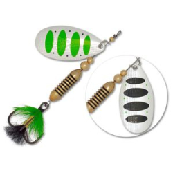Duo Realis Spin - приманка для работы по площадям с берега или лодки. Компактное тело обеспечивает дальний заброс. В то время как лепесток плавно вращается, обеспечивая шумовой и водоизмещающий эффект и привлекая хищника с большого расстояния, тело приманки слегка покачивается вокруг своей продольной оси, соблазняя его на поклёвку.