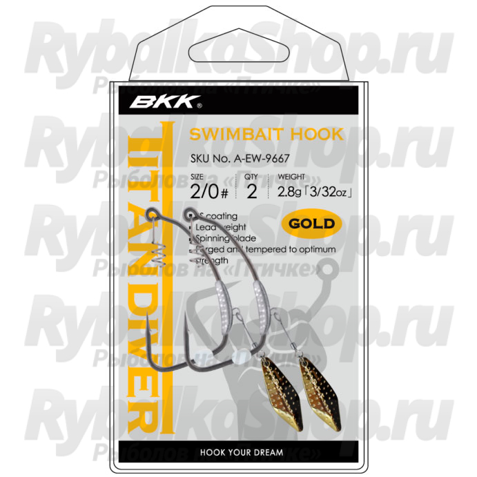 BKK Titan Diver — серия мощных крючков для больших приманок и ловли крупных рыб от всемирно известного бренда BKK. Они являются модифицированной версией серии Titan 9006, в которую была добавлена свинцовая огрузка и лепесток для дополнительного привлечения рыбы. Офсетник сделан из высокоуглеродистой стали с тефлоновым покрытием Super Slide, что обеспечивает колоссальный запас мощности крючка, устойчивость к коррозии и долговечность.