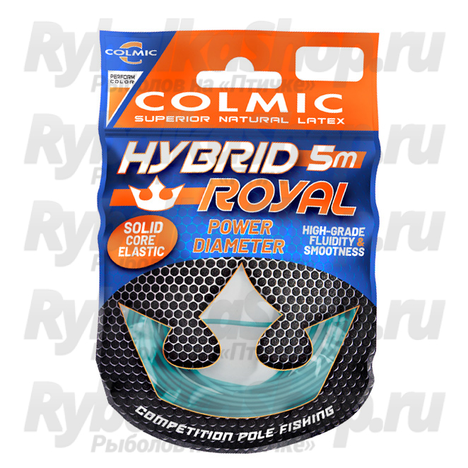 Серия штекерной резины HYBRID ROYAL имеет сплошной стержень во внутренней части и производится из смеси латексных полимеров последнего поколения. Эти ингредиенты обеспечили идеальный баланс эластичности и удлинения без ущерба для прочности резины. Отличительные цвета имеют непрозрачную природу и для HYBRID ROYAL были специально подобраны из новейших образцов, чтобы гарантировать эластичному материалу более длительный срок службы. Известно, что чем больше цветных пигментов добавляется в смесь, тем больше снижается общая производительность эластика. Доступные диаметры удовлетворяют всем потребностям при любых условиях ловли, от мелкой рыбы до самых крупных экземпляров, которые можно поймать на штекерную удочку.