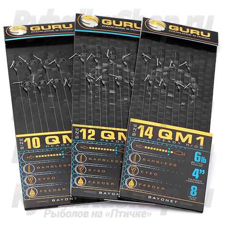 Готовые поводки GURU QM1 Bayonet Ready Rigs длиной 4 и 15 дюймов. Высококачественные крючки с предварительно привязанной леской, собранные вместе с компонентами Guru. 4-дюймовая версия идеально подходит для ловли фидером, а 15-дюймовая, больше подходит для работы с поплавком. Используется крючок QM1 с суперпрочным покрытием из ПТФЭ от Guru, и леска N-Gauge. С байонетным креплением на волосе идеально подходит для крепления всплывающих бойлов и wafter.