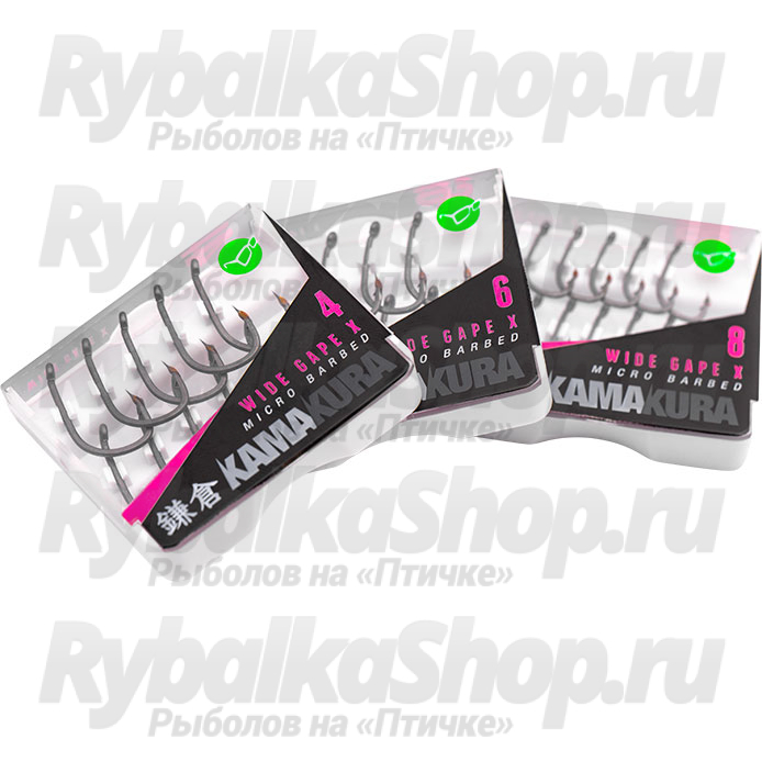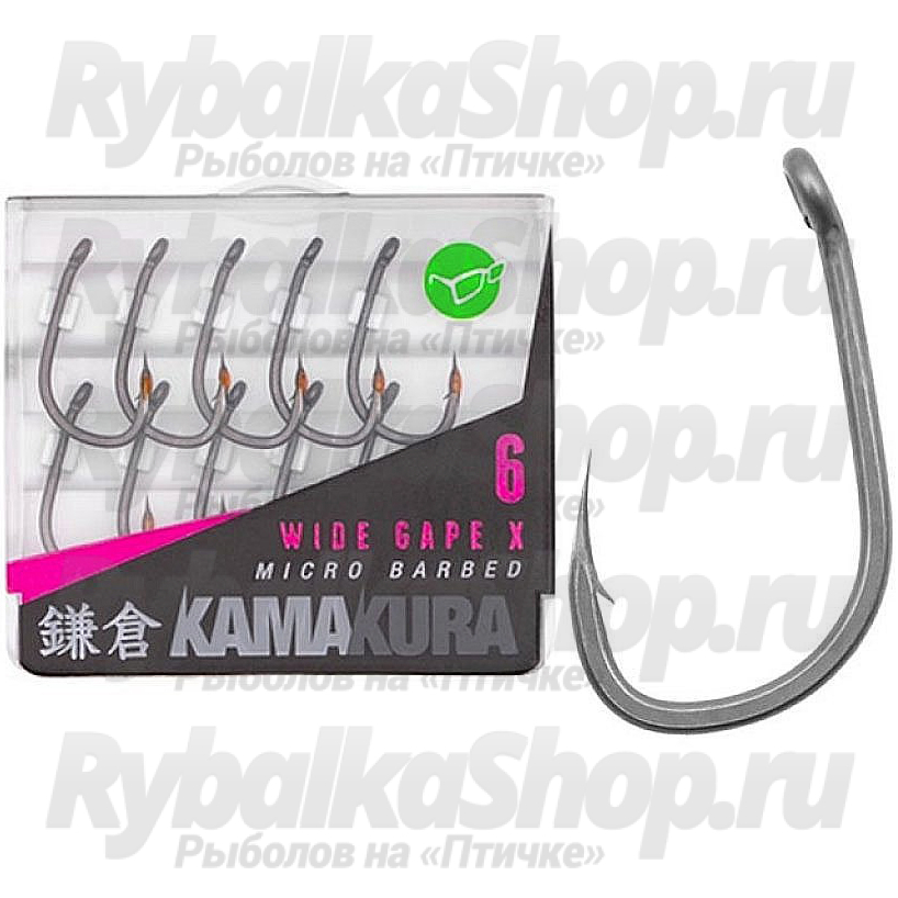 Крючки Kamakura Wide Gape X — это усовершенствованная версия классической модели из толстой проволоки, но обладающая более острым и тонким жалом, в отличие от стандартного крючка «X». Модель имеет немного загнутое внутрь ушко, короткое цевье и кованый поддев. Крючок можно использовать с широким спектром всплывающих и донных приманок. Как только Kamakura Wide Gape X попадает в пасть рыбы, он, как правило, остается внутри и сходы крайне редки. Поставляются крючки в коробке, которая надежно удерживает каждый отдельный крючок. Каждая упаковка содержит десять крючков. Версии с бородками и без доступны в размерах 4, 6 и 8.