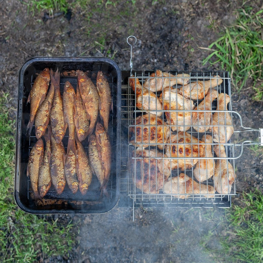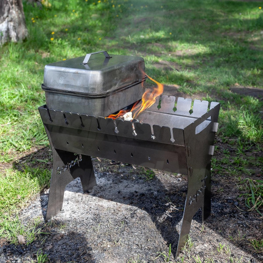Коптильня походная Helios предназначена для горячего копчения рыбы и птицы на открытом воздухе (на рыбалке, в туристических походах, на дачах и т.д.).
