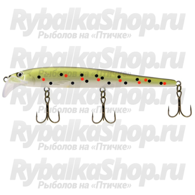 Данный воблер имеет размер 135 мм, и его форма может быть определена как «щепка». Такой тип приманок широко применяется в соседней Финляндии как на внутренних водоёмах, так и в Финском заливе. Особенностью этой формы и носовой лопатки является мелкочастотная игра и небольшое заглубление – порядка двух метров, что является востребованным практически у всех рыболовов-троллингистов.