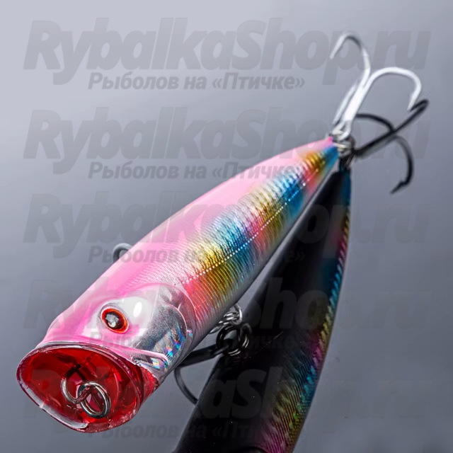 Noeby NBL9069 - поппер имеющий аэродинамическую форму, позволяющий выполнять дальние и точные забросы. Благодаря глубокой выемке в передней части приманки создает громкие звуки и при рывковой проводке и активно разбрызгивает воду перед собой. Также оставляет характерный след на поверхности. В сумме эти факторы являются отличными раздражителями практически для любой хищной рыбы, в первую очередь для щуки. Наибольшую эффективность поппер проявляет при ловле над зарослями травы. Плавающий. Поверхностный.