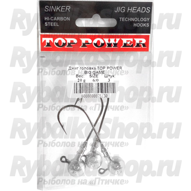 Джиг-головка Top Power Big Game крючок №8/0 20.0g. (3шт.)