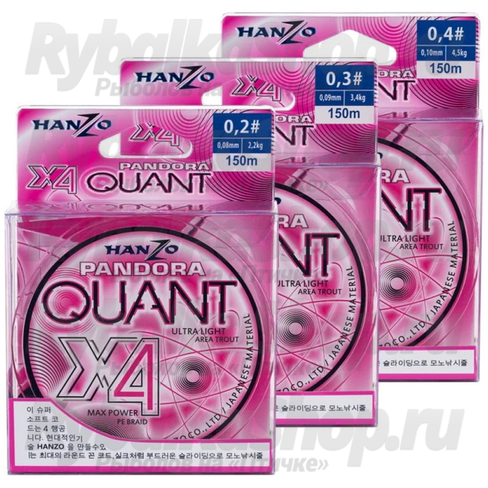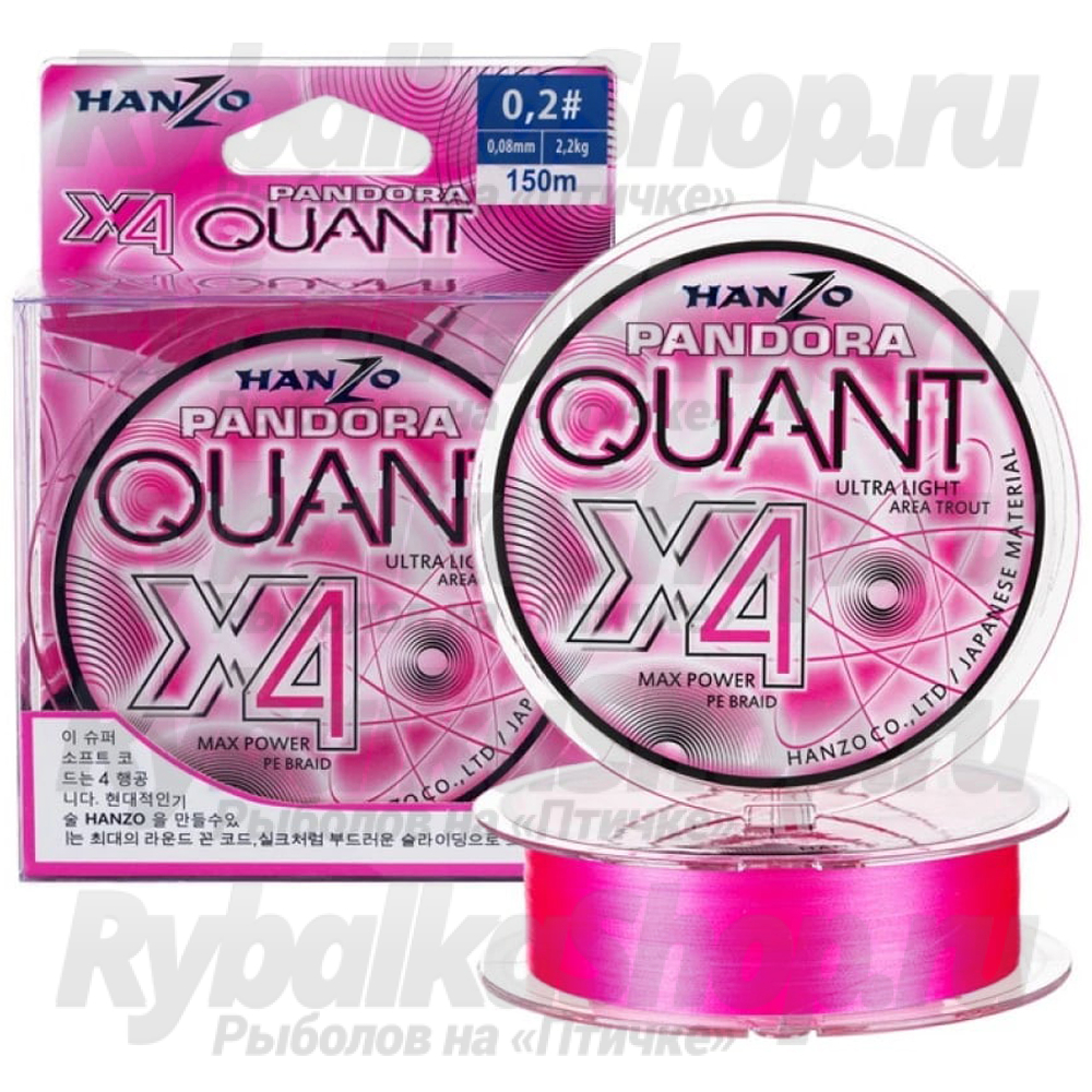 Шнуры Hanzo Pandora Quant x4 150м Pink представлены в 3-х размерах: #0,2; #0.3; #0,4, в намотке 150 метров. Цвет - ярко розовый.
